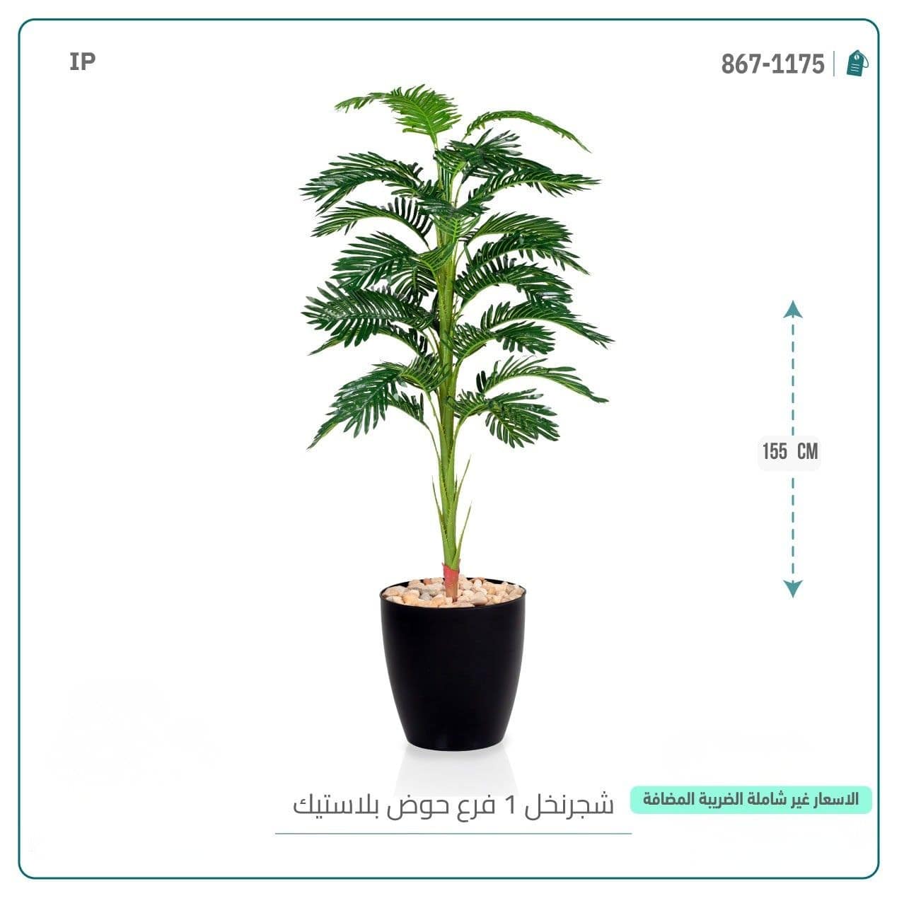 شجرة نخل صناعية – فرع واحد – حوض بلاستيك – ارتفاع 155 سم